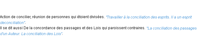 Ancienne définition académique pour le terme « conciliation » (parue en 1798).