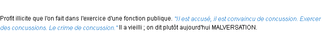 Définition « concussion » du dictionnaire académique Français, parution de l’année 1932.