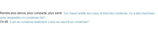 Ancienne définition développée dans dictionnaire académique, 1798.Merci à Laurentine et Laure pour la numérisation du mot condenser.