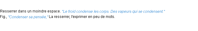 Définition « condenser » du dictionnaire académique Français, parution de l’année 1932.
