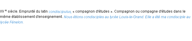 Ancienne définition développée dans dictionnaire académique, 1798.Merci à Eloi et Mireille pour la numérisation du mot condisciple.