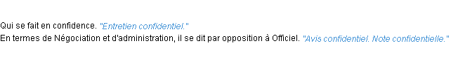 Signification du terme « confidentiel », parution de 1986, dictionnaire académique Français.