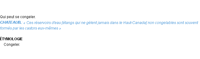 Signification développée en 1876 par Mr Littré (dictionnaire dit d’Emile Littré).Merci à Telesphore et Arnaud pour la numérisation du mot congelable.