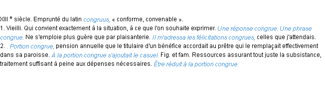 Ancienne signification éditée en 1835 pour le terme « congru » par l’Académie Française.