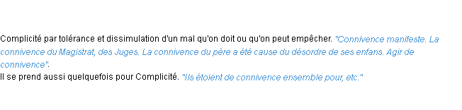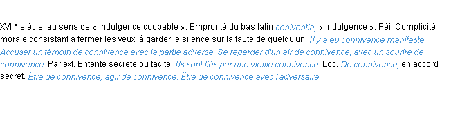 Ancienne définition de l’Académie Française (édition de 1835) pour le mot « connivence ».