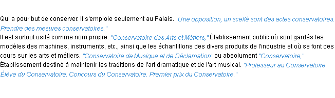Ancienne signification éditée en 1835 pour le terme « conservatoire » par l’Académie Française.