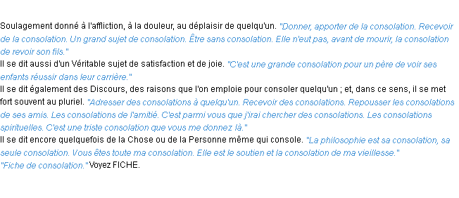 Définition de « consolation » de source académique (Académie Française, parution de 1932).