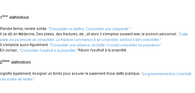 Ancienne signification parue en 1798 dans dictionnaire de l’Académie Française.Merci à Jacques et Clémence pour la numérisation du mot consolider.