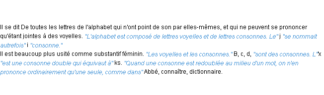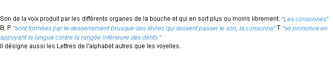 Définition « consonne » du dictionnaire académique Français, parution de l’année 1986.