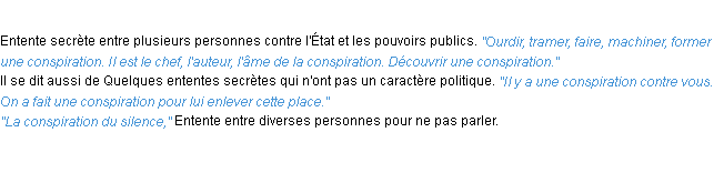 Ancienne définition de l’Académie Française (édition de 1835) pour le mot « conspiration ».