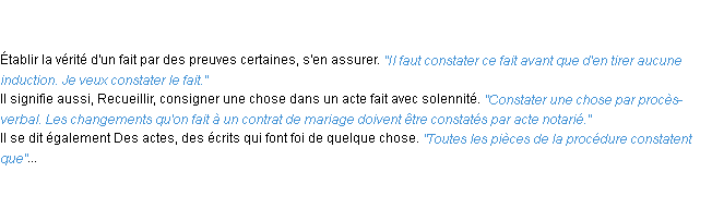 Définition du mot « constater » par l’Académie Française (édition de 1986).