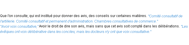Signification éditée en 1986 pour le terme « consultatif » par l’Académie Française.
