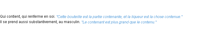 Ancienne définition de l’Académie Française (édition de 1798) pour le mot « contenant ».