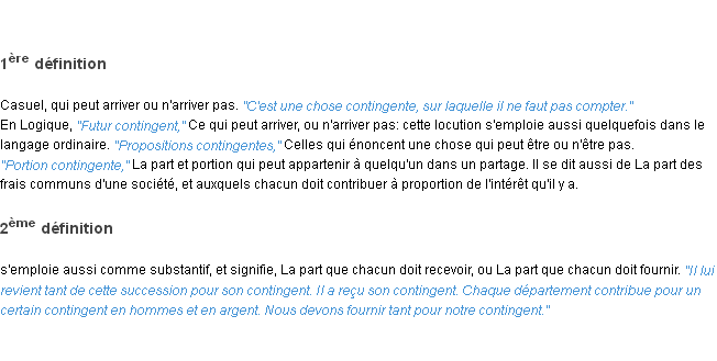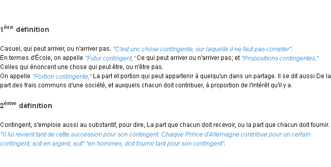 Signification éditée en 1932 pour le terme « contingent » par l’Académie Française.