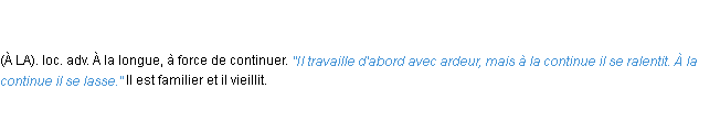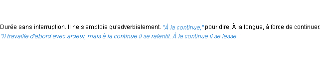 Signification du terme « continue », parution de 1876 (dictionnaire le Littré).