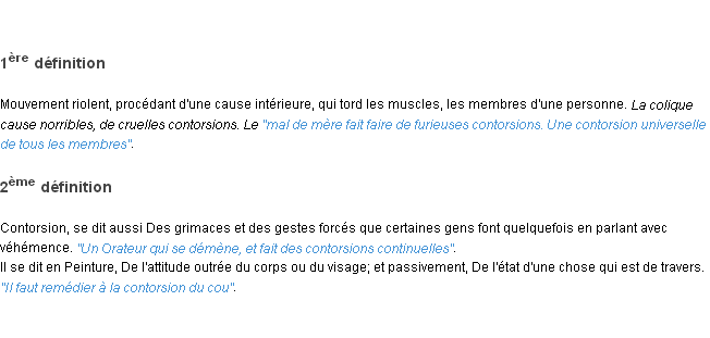 Ancienne signification issue du dico de l’Académie Française, parue en 1798.Merci à Dominique et Nadine pour la numérisation du mot contorsion.