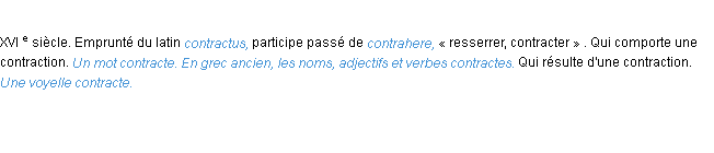 Définition de l’Académie Française (édition de 1986) pour le mot « contracte ».