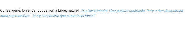 Ancienne signification éditée en 1798 pour le terme « contraint » par l’Académie Française.