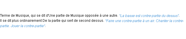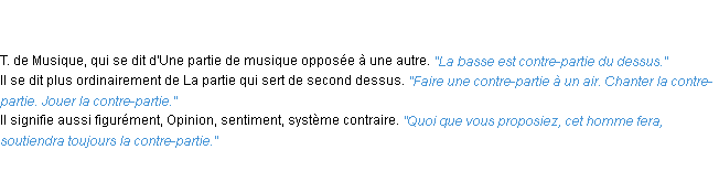 Signification du terme « contre-partie », parution de 1876 (dictionnaire le Littré).
