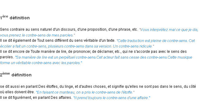 Ancienne signification éditée en 1798 pour le terme « contre-sens » par l’Académie Française.