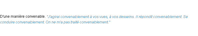 Définition « convenablement » du dictionnaire académique Français, parution de l’année 1986.