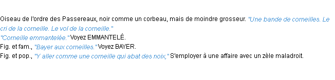 Signification éditée en 1932 pour le terme « corneille » par l’Académie Française.
