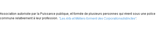 Ancienne définition de l’Académie Française (édition de 1835) pour le mot « corporation ».