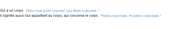 Définition académique pour le terme « corporel » (parue en 1932).
