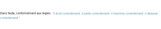 Signification éditée en 1986 pour le terme « correctement » par l’Académie Française.