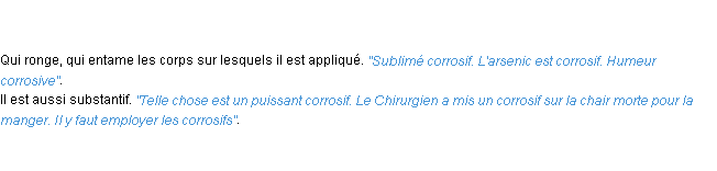 Ancienne signification éditée en 1835 pour le terme « corrosif » par l’Académie Française.
