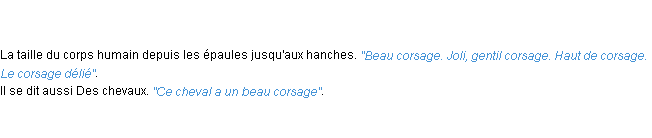 Ancienne signification développée en 1798 par l’académie Française (ACAD - 1798).Merci à Sylvianne et Romain pour la numérisation du mot corsage.