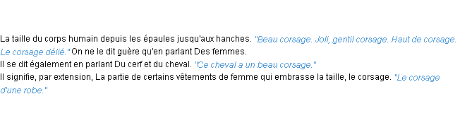 Signification du terme « corsage », parution de 1932, dictionnaire académique Français.