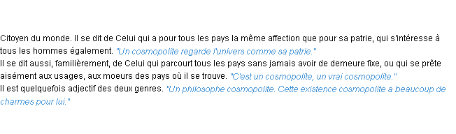 Définition de l’Académie Française (édition de 1986) pour le mot « cosmopolite ».