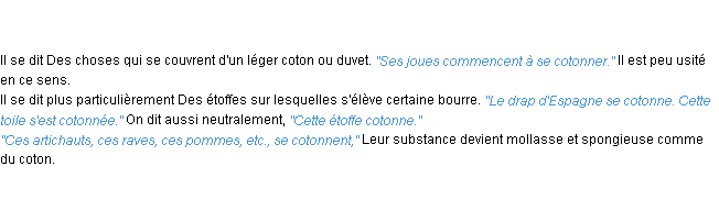 Définition du mot « cotonner » par l’Académie Française (édition de 1932).