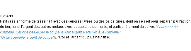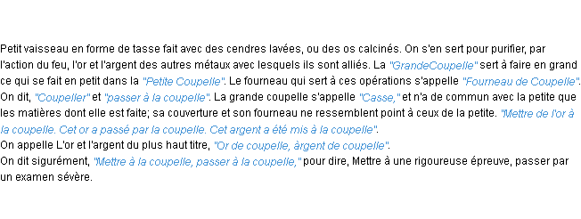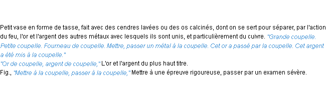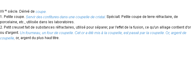 Définition « coupelle » du dictionnaire académique Français, parution de l’année 1986.