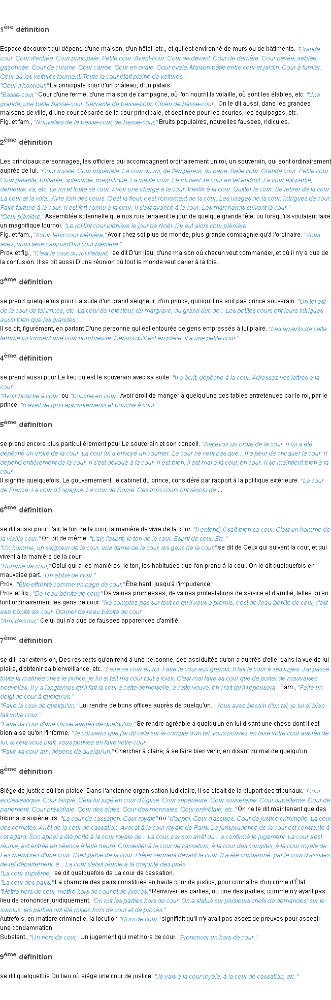 Ancienne définition du mot « cour » par l’Académie Française (édition de 1835).