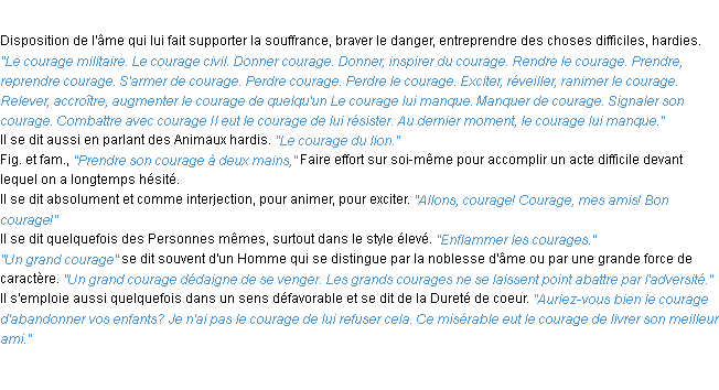 Quelques citations et utilisation du mot courage dans la littérature et les publications journalistiques :
