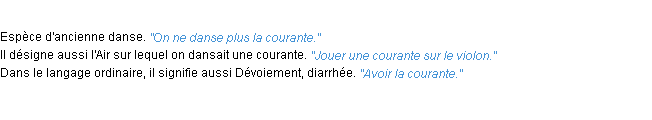 Définition du mot « courante » par l’équipe de la-definition.fr (édition de 2011).Merci à Aristide et Arnaud pour la numérisation du mot courante.
