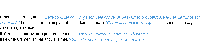 Usage du mot: courroucer