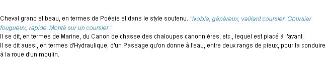 Ancienne signification du terme « coursier », parution de 1835, dictionnaire académique Français.