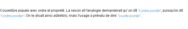 Signification éditée en 1876 pour le terme « courte-pointe » par Emile Littré.