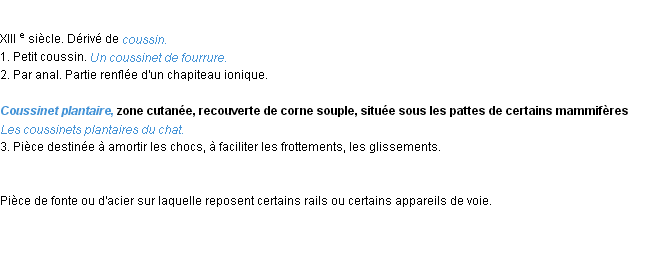 Définition du mot « coussinet » par l’Académie Française (édition de 1932).
