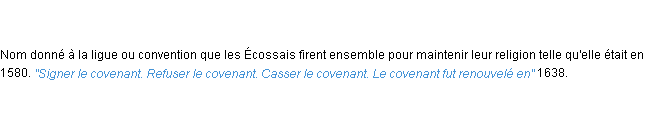 Signification développée en 1876 par Mr Littré (dictionnaire dit d’Emile Littré).Merci à Florette et Theirn pour la numérisation du mot covenant.