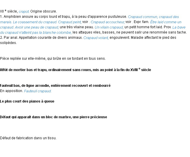Ancienne signification du terme « crapaud », parution de 1835, dictionnaire académique Français.
