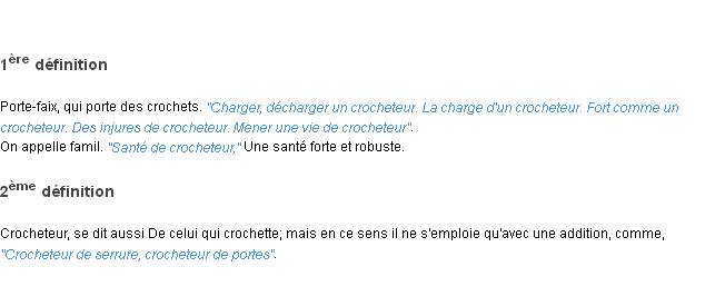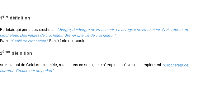 Définition « crocheteur » du dictionnaire académique Français, parution de l’année 1986.
