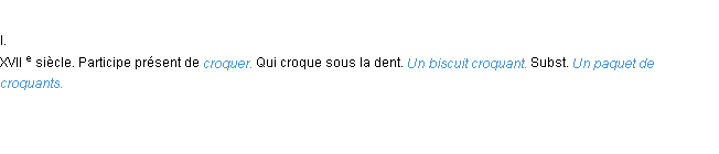 Ancienne signification issue du dico de l’Académie Française, parue en 1798.Merci à Gwenaelle et Philippe pour la numérisation du mot croquant.