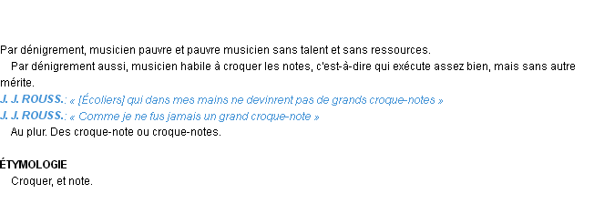 Définition de « croque-note » issue du Littré (Auteur Emile Littré, édité en 1876).Merci à Fabienne et Telesphore pour la numérisation du mot croque-note.