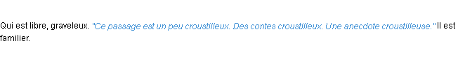 Ancienne signification éditée par l’Académie Française, année 1798.Merci à éloise et Marine pour la numérisation du mot croustilleux.