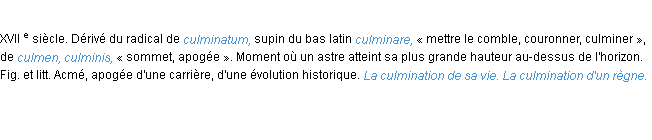 Signification du terme « culmination », parution de 1932, dictionnaire académique Français.