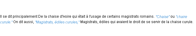 Ancienne signification parue en 1798 dans dictionnaire de l’Académie Française.Merci à Jérémie et Emmanuelle pour la numérisation du mot curule.